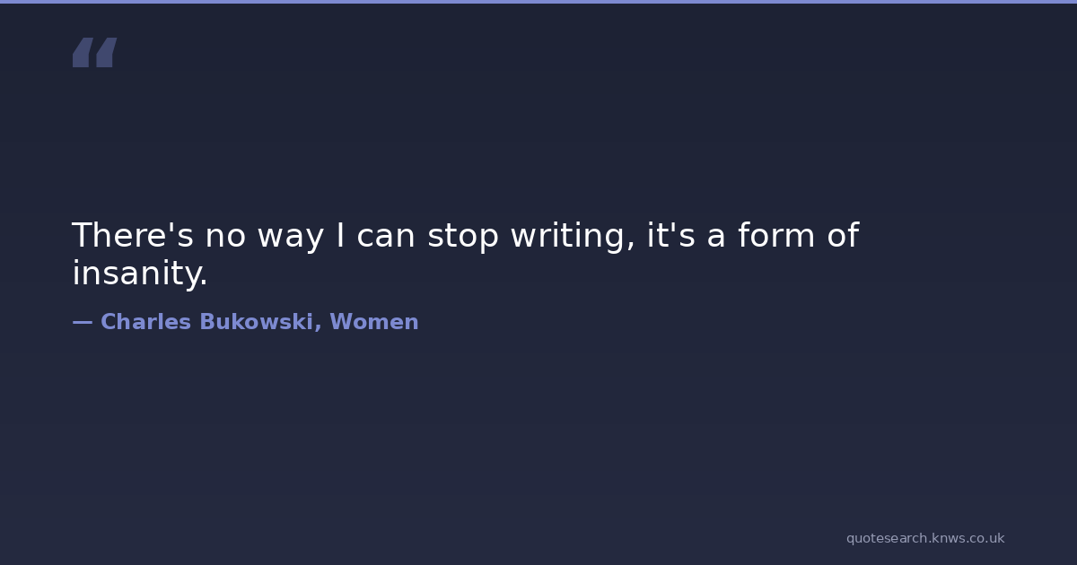 There's no way I can stop writing, it's a form of insanity. writing Download Image Share on X Share on Facebook Copy Link