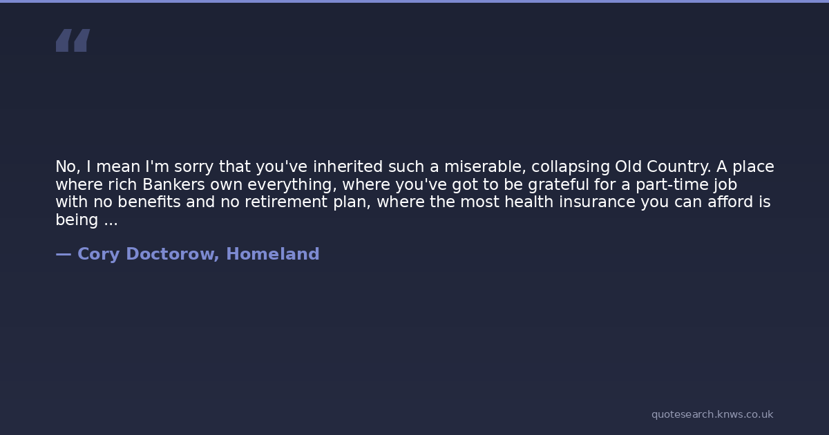 No, I mean I'm sorry that you've inherited such a miserable, collapsing Old Country. A place where rich Bankers own everything, where you've got to be grateful for a part-time job with no benefits and no retirement plan, where the most health insurance you can afford is being careful and hoping you don't get sick, where --