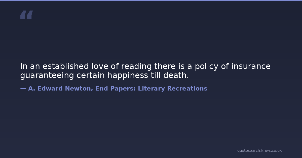 In an established love of reading there is a policy of insurance guaranteeing certain happiness till death.