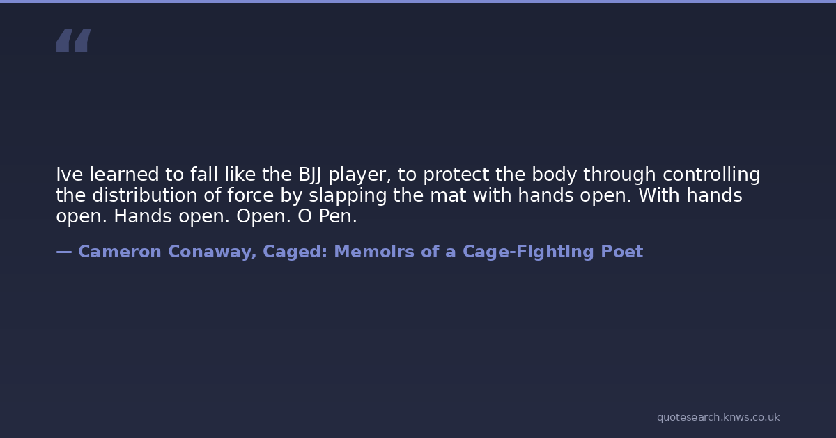 Ive learned to fall like the BJJ player, to protect the body through controlling the distribution of force by slapping the mat with hands open. With hands open. Hands open. Open. O Pen.