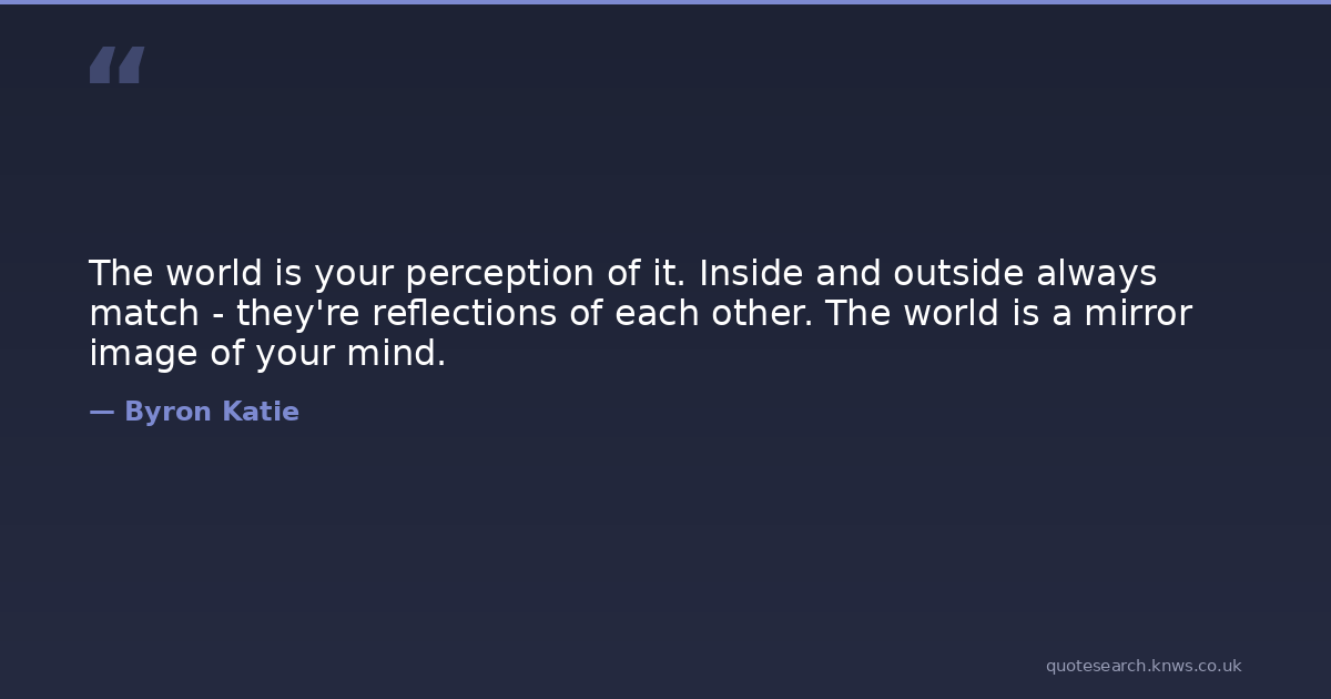 The world is your perception of it. Inside and outside always match - they're reflections of each other. The world is a mirror image of your mind.