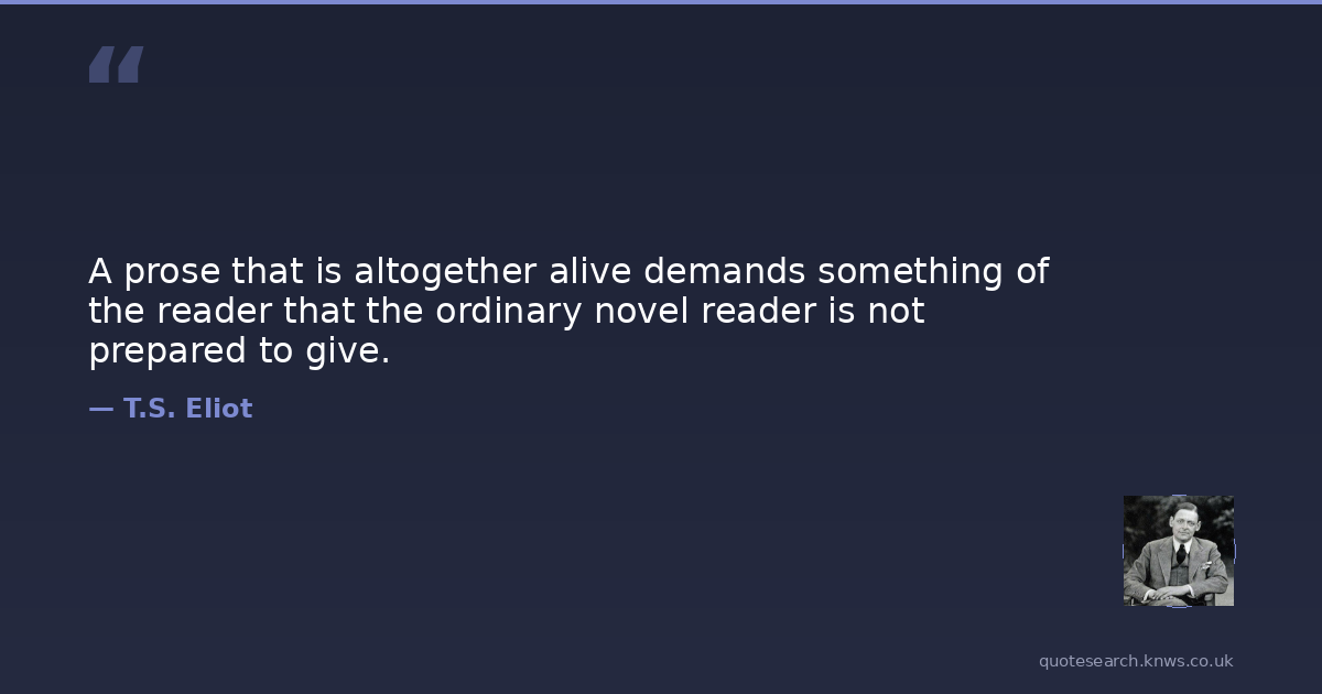 A prose that is altogether alive demands something of the reader that the ordinary novel reader is not prepared to give.