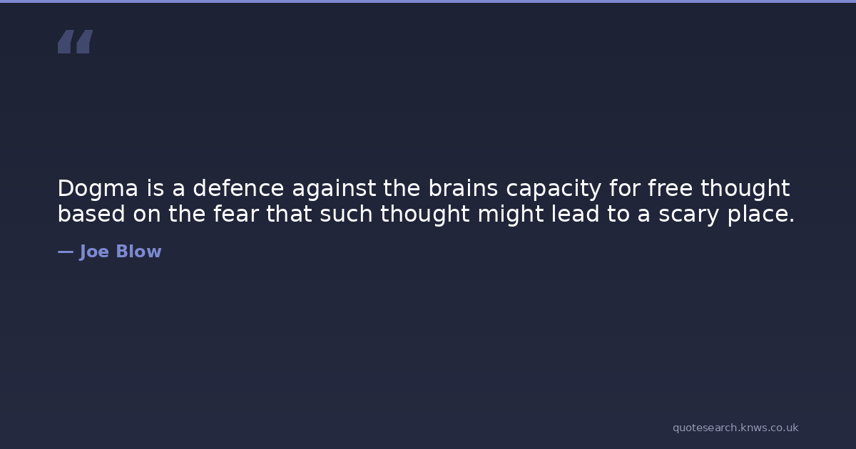 Dogma is a defence against the brains capacity for free thought based on the fear that such thought might lead to a scary place.