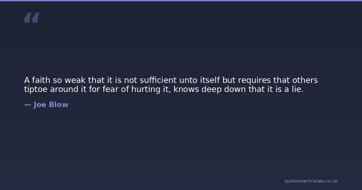 A faith so weak that it is not sufficient unto itself but requires that others tiptoe around it for fear of hurting it, knows deep down that it is a lie.