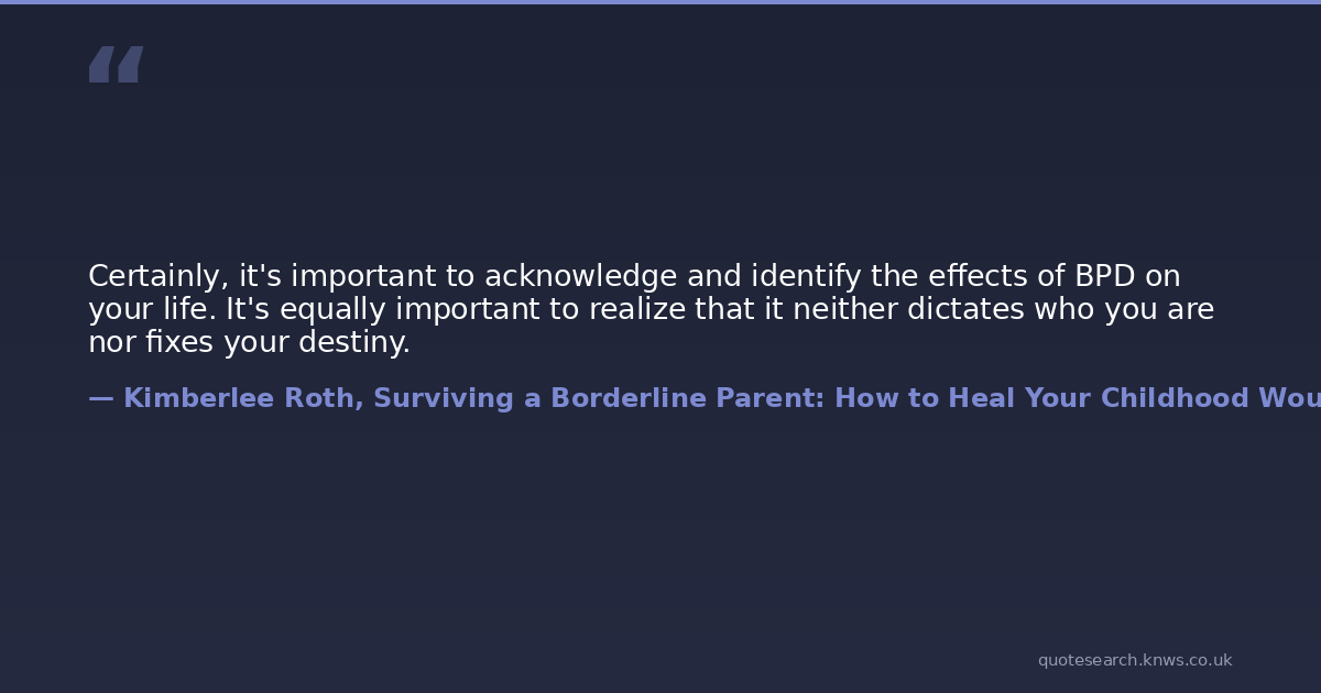Certainly, it's important to acknowledge and identify the effects of BPD on your life. It's equally important to realize that it neither dictates who you are nor fixes your destiny.