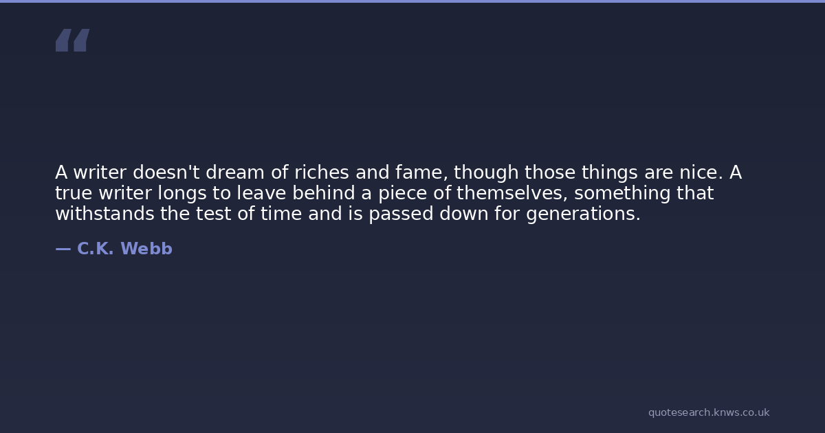 A writer doesn't dream of riches and fame, though those things are nice. A true writer longs to leave behind a piece of themselves, something that withstands the test of time and is passed down for generations.
