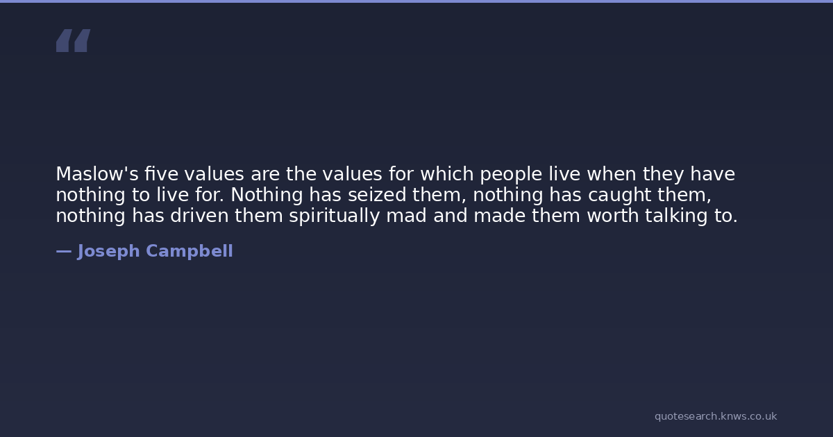 Maslow's five values are the values for which people live when they have nothing to live for. Nothing has seized them, nothing has caught them, nothing has driven them spiritually mad and made them worth talking to.