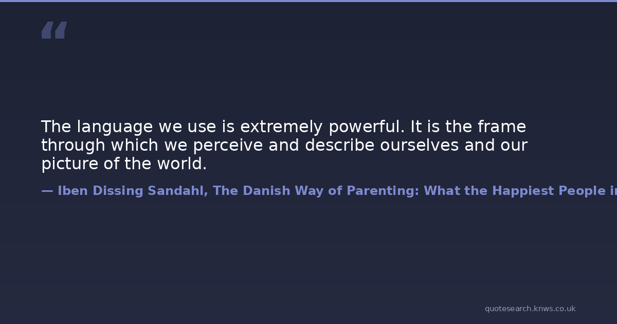 The language we use is extremely powerful. It is the frame through which we perceive and describe ourselves and our picture of the world.