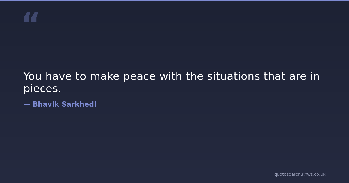 You have to make peace with the situations that are in pieces. life-quotes Download Image Share on X Share on Facebook Copy Link