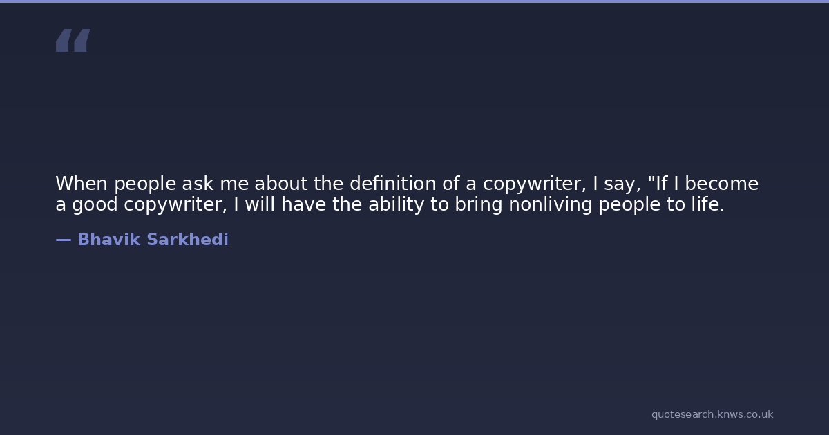 When people ask me about the definition of a copywriter, I say, "If I become a good copywriter, I will have the ability to bring nonliving people to life.