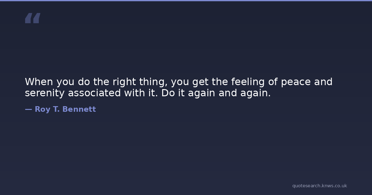 When you do the right thing, you get the feeling of peace and serenity associated with it. Do it again and again.