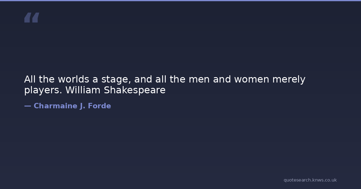All the worlds a stage, and all the men and women merely players. William Shakespeare