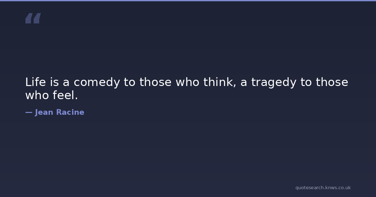 Life is a comedy to those who think, a tragedy to those who feel. comedy emotions feeling life thinking tragedy Download Image Share on X Share on Facebook Copy Link