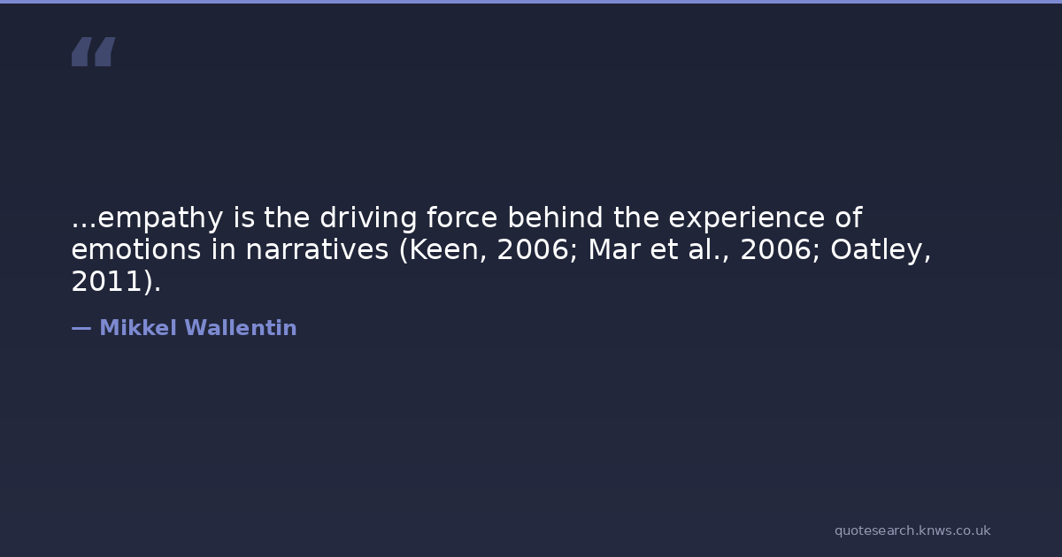 ...empathy is the driving force behind the experience of emotions in narratives (Keen, 2006; Mar et al., 2006; Oatley, 2011).