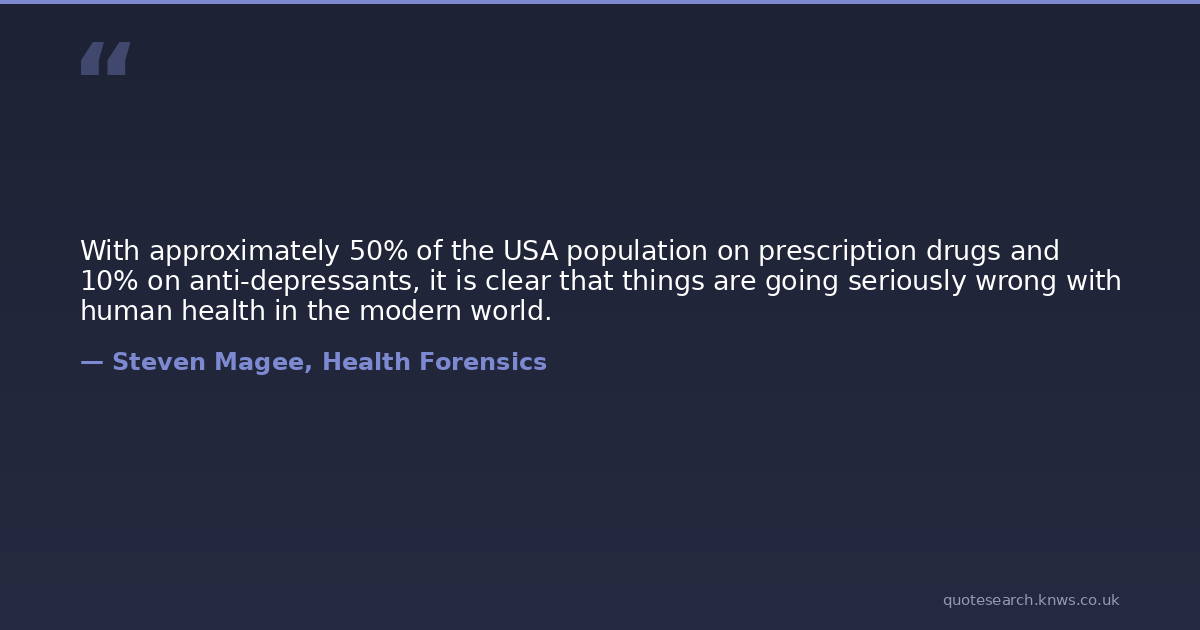 With approximately 50% of the USA population on prescription drugs and 10% on anti-depressants, it is clear that things are going seriously wrong with human health in the modern world.
