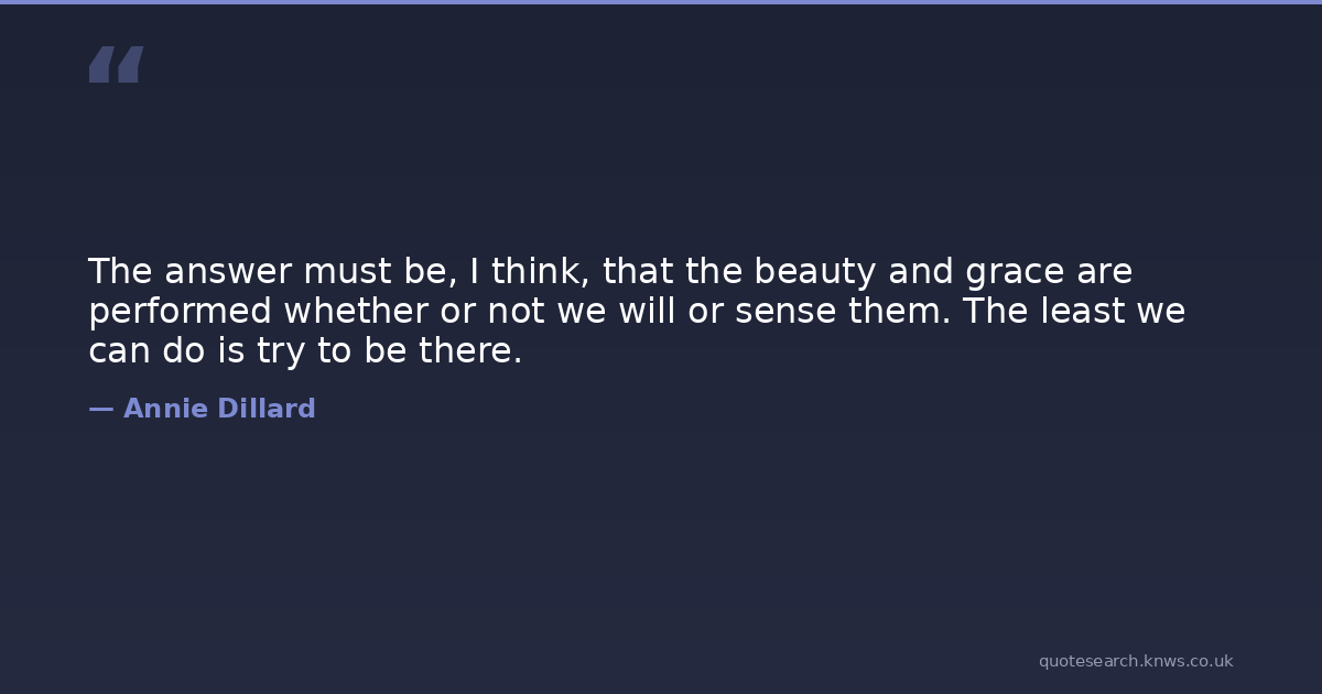The answer must be, I think, that the beauty and grace are performed whether or not we will or sense them. The least we can do is try to be there.
