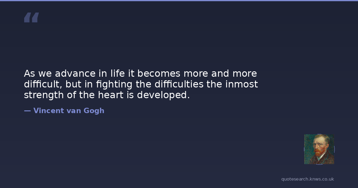 As we advance in life it becomes more and more difficult, but in fighting the difficulties the inmost strength of the heart is developed.