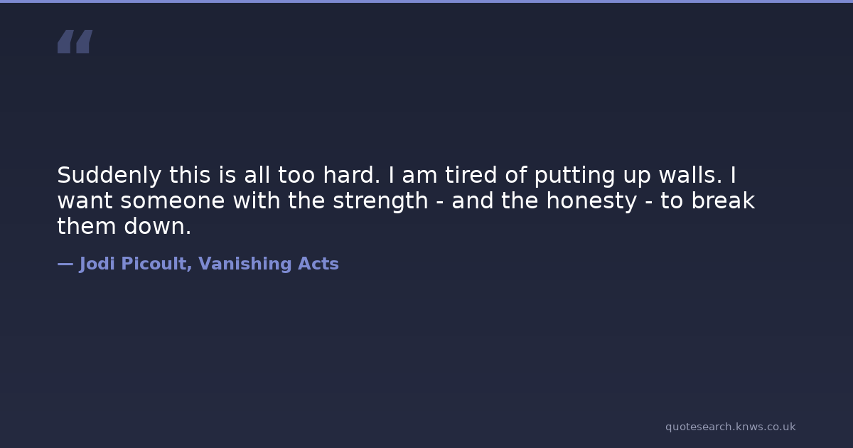 Suddenly this is all too hard. I am tired of putting up walls. I want someone with the strength - and the honesty - to break them down.