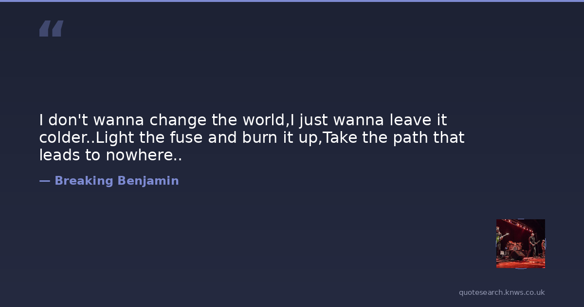 I don't wanna change the world,I just wanna leave it colder..Light the fuse and burn it up,Take the path that leads to nowhere..