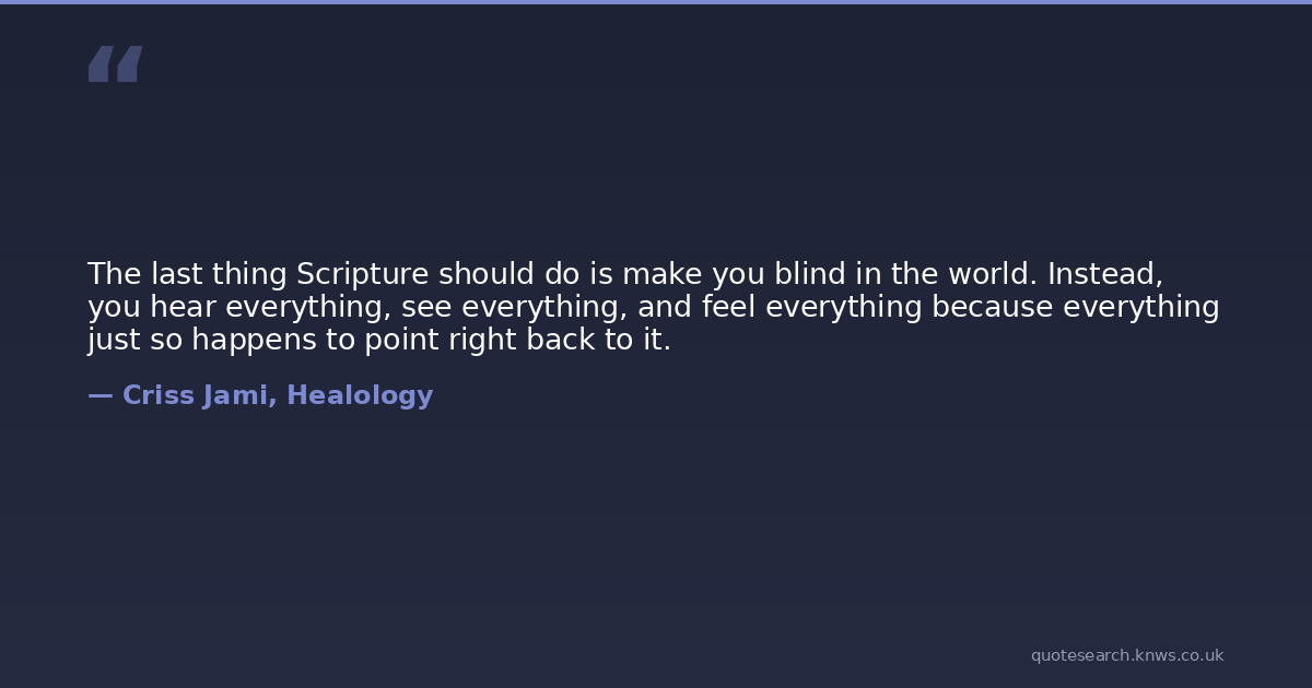 The last thing Scripture should do is make you blind in the world. Instead, you hear everything, see everything, and feel everything because everything just so happens to point right back to it.