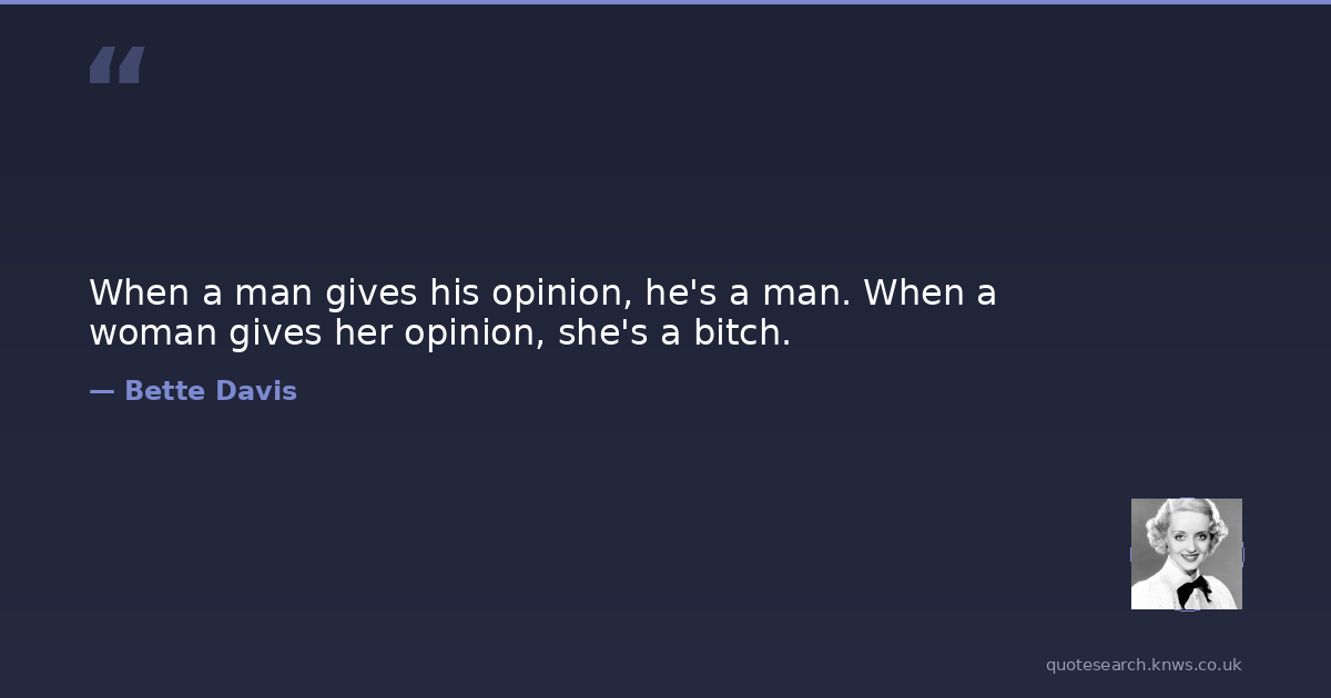 When a man gives his opinion, he's a man. When a woman gives her opinion, she's a bitch.