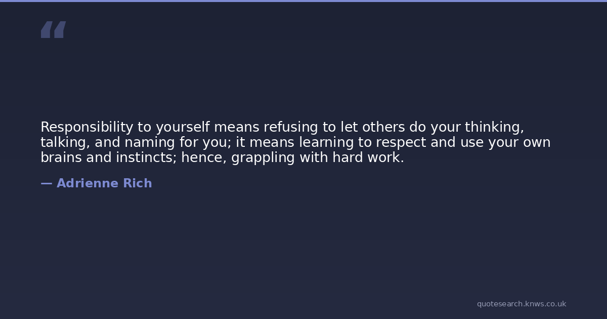 Responsibility to yourself means refusing to let others do your thinking, talking, and naming for you; it means learning to respect and use your own brains and instincts; hence, grappling with hard work.