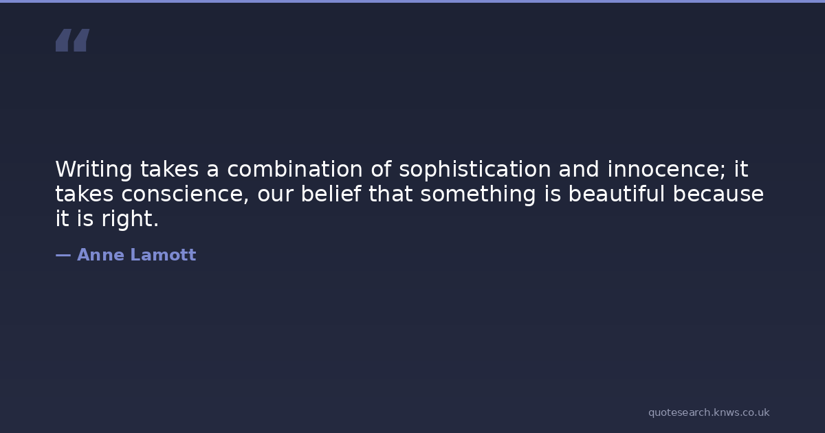 Writing takes a combination of sophistication and innocence; it takes conscience, our belief that something is beautiful because it is right.