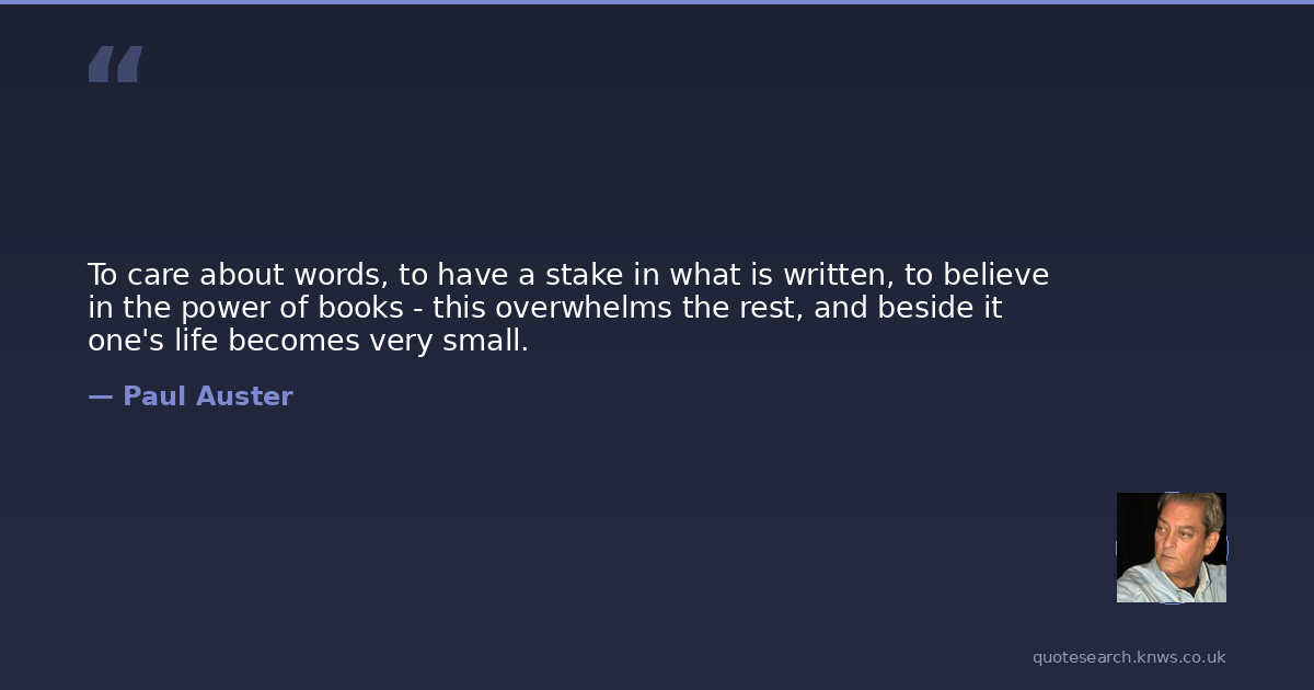 To care about words, to have a stake in what is written, to believe in the power of books - this overwhelms the rest, and beside it one's life becomes very small.