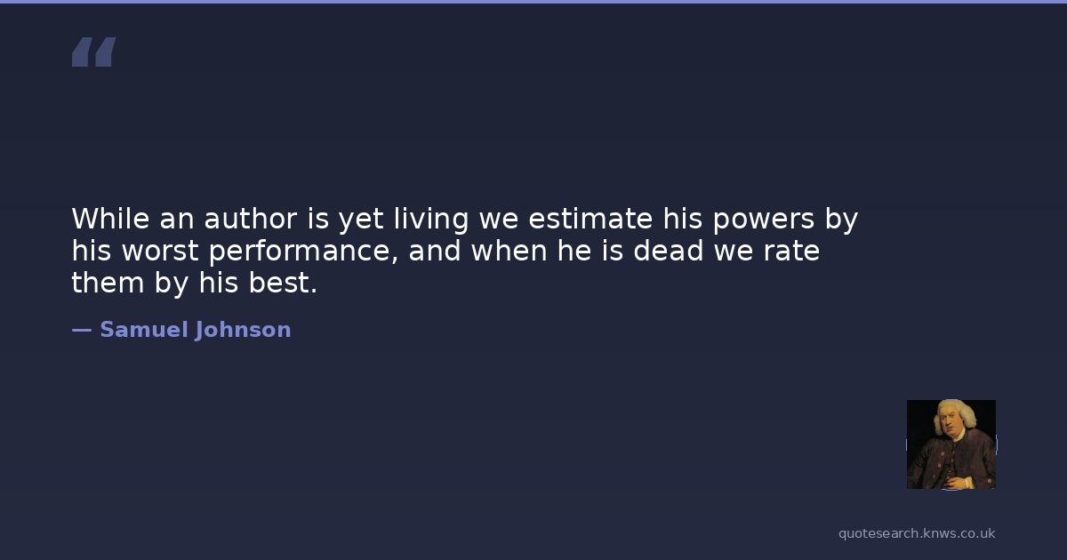 While an author is yet living we estimate his powers by his worst performance, and when he is dead we rate them by his best.