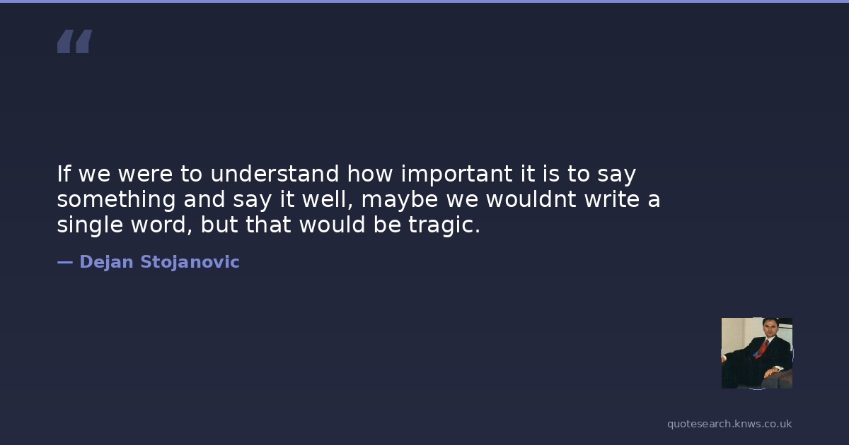 If we were to understand how important it is to say something and say it well, maybe we wouldnt write a single word, but that would be tragic.