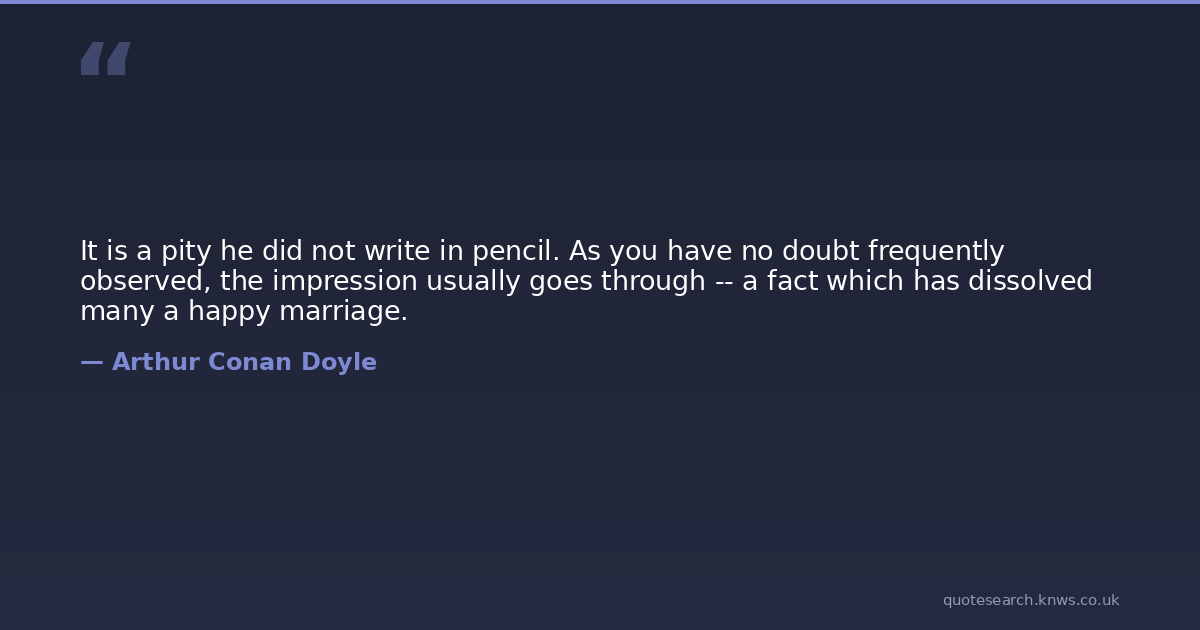It is a pity he did not write in pencil. As you have no doubt frequently observed, the impression usually goes through -- a fact which has dissolved many a happy marriage.