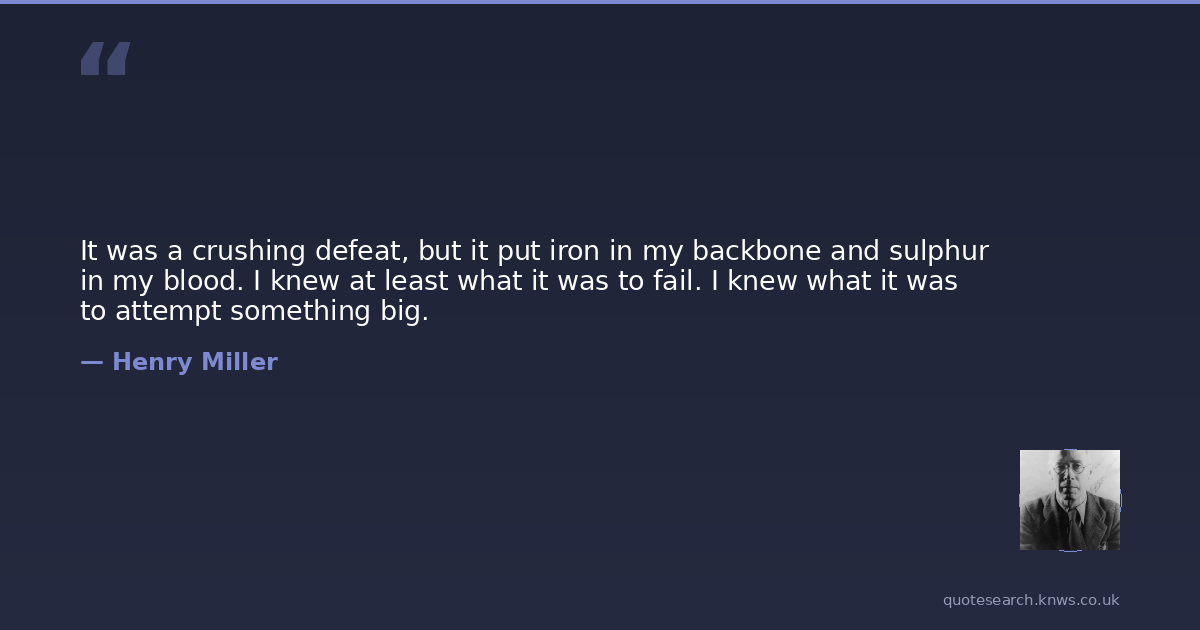 It was a crushing defeat, but it put iron in my backbone and sulphur in my blood. I knew at least what it was to fail. I knew what it was to attempt something big.