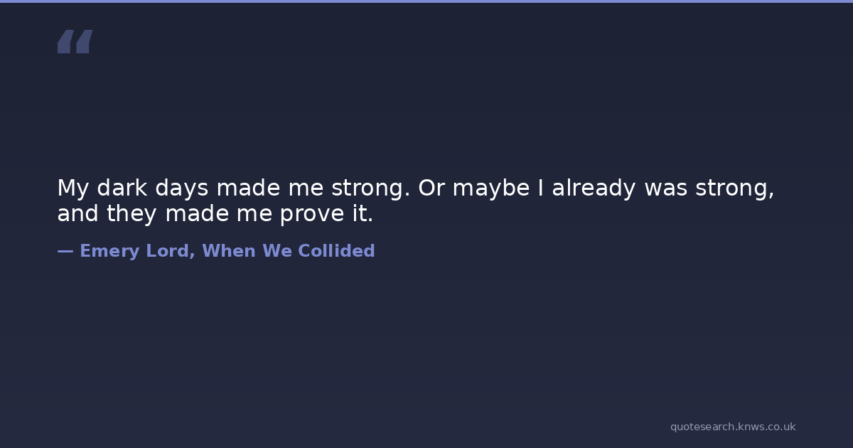 My dark days made me strong. Or maybe I already was strong, and they made me prove it.
