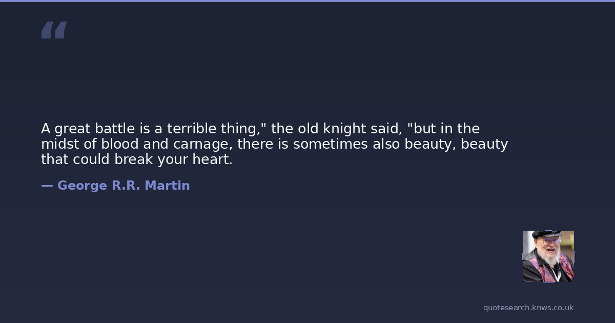 A great battle is a terrible thing," the old knight said, "but in the midst of blood and carnage, there is sometimes also beauty, beauty that could break your heart.