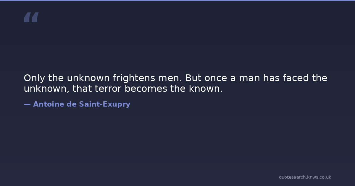 Only the unknown frightens men. But once a man has faced the unknown, that terror becomes the known.