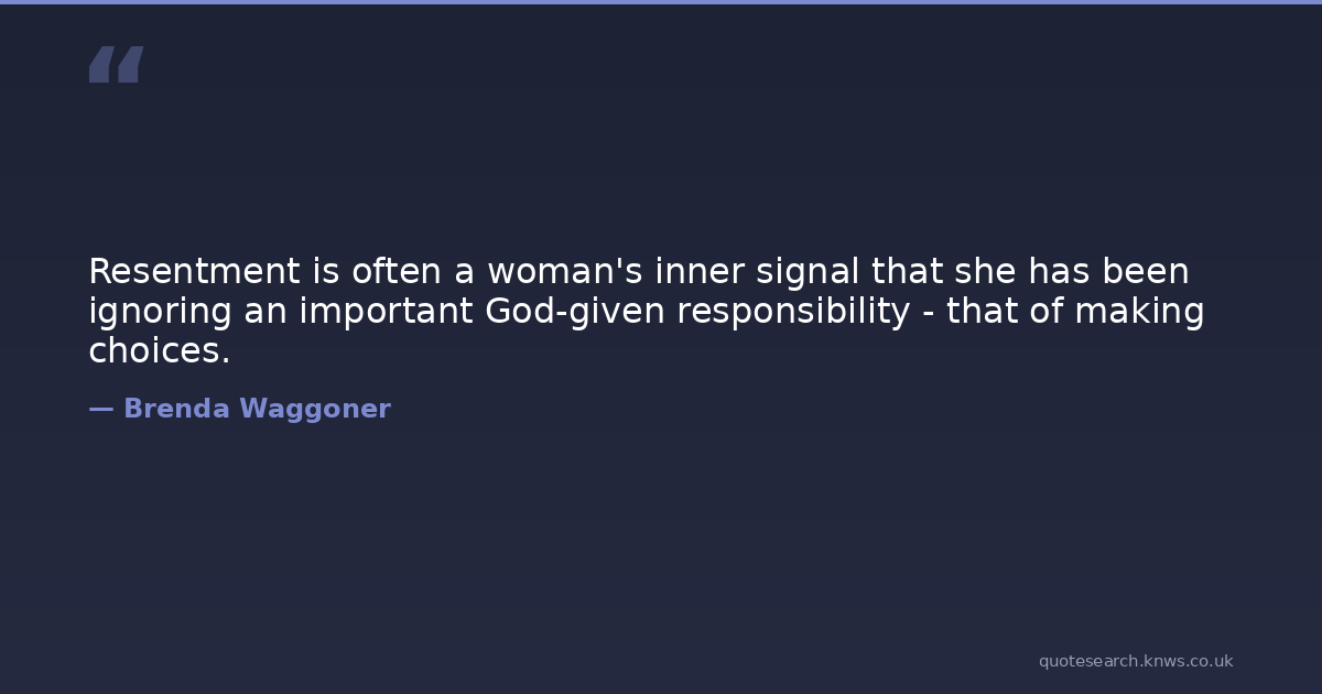 Resentment is often a woman's inner signal that she has been ignoring an important God-given responsibility - that of making choices.