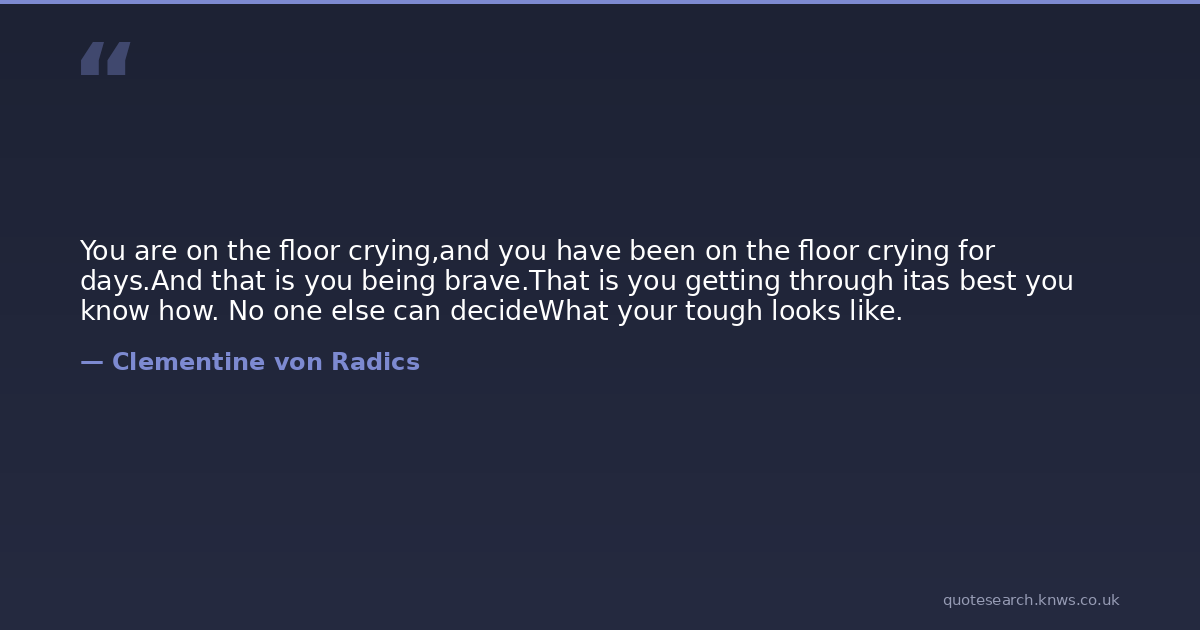 You are on the floor crying,and you have been on the floor crying for days.And that is you being brave.That is you getting through itas best you know how. No one else can decideWhat your tough looks like.