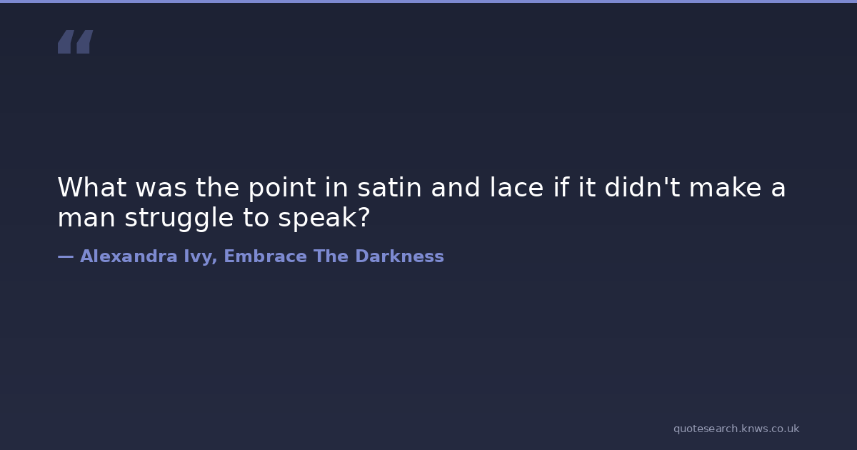 What was the point in satin and lace if it didn't make a man struggle to speak? lust power submission undergarments women Download Image Share on X Share on Facebook Copy Link