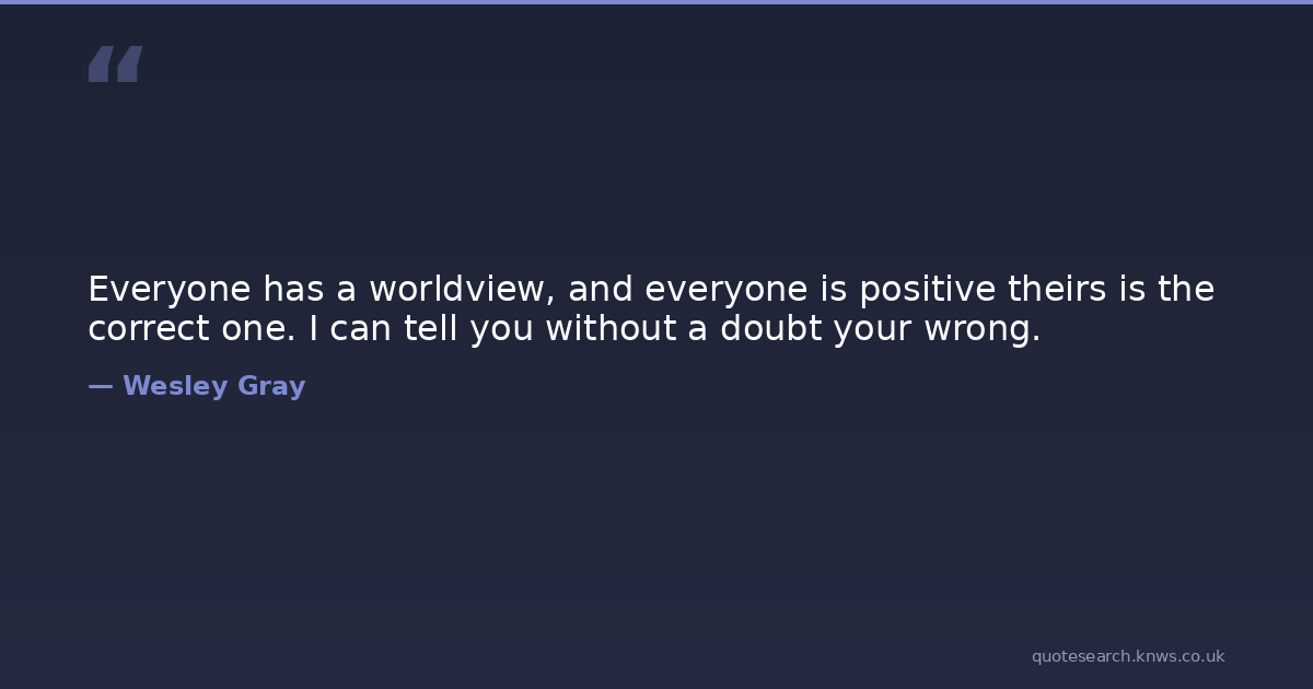 Everyone has a worldview, and everyone is positive theirs is the correct one. I can tell you without a doubt your wrong. quote Download Image Share on X Share on Facebook Copy Link