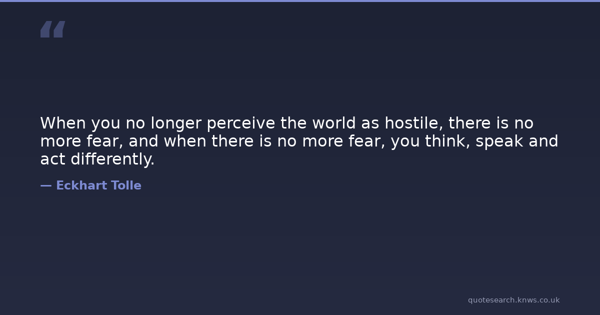 When you no longer perceive the world as hostile, there is no more fear, and when there is no more fear, you think, speak and act differently.