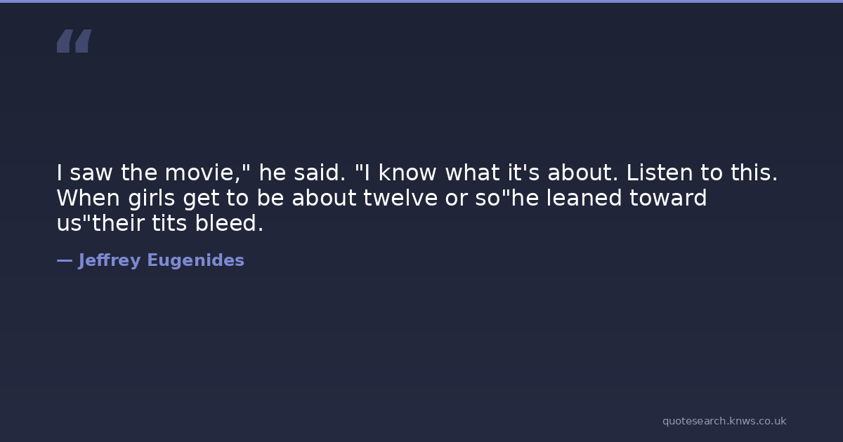 I saw the movie," he said. "I know what it's about. Listen to this. When girls get to be about twelve or so"he leaned toward us"their tits bleed.