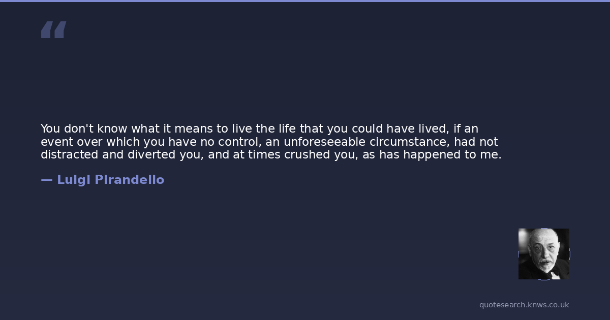 You don't know what it means to live the life that you could have lived, if an event over which you have no control, an unforeseeable circumstance, had not distracted and diverted you, and at times crushed you, as has happened to me.