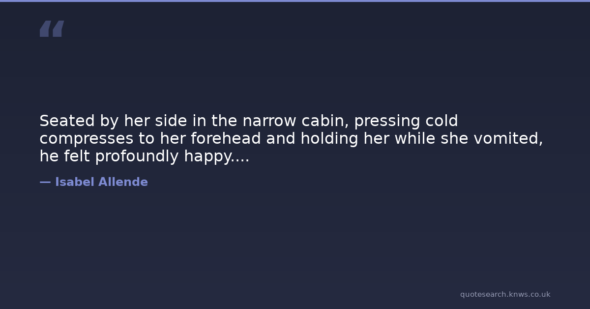 Seated by her side in the narrow cabin, pressing cold compresses to her forehead and holding her while she vomited, he felt profoundly happy....