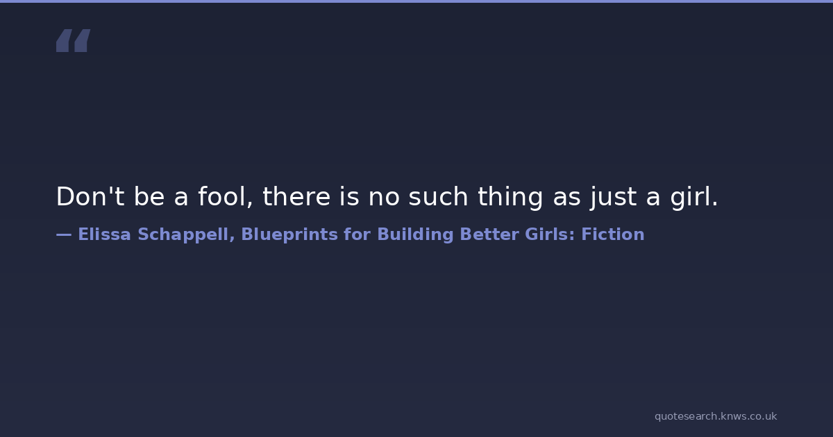 Don't be a fool, there is no such thing as just a girl. women Download Image Share on X Share on Facebook Copy Link