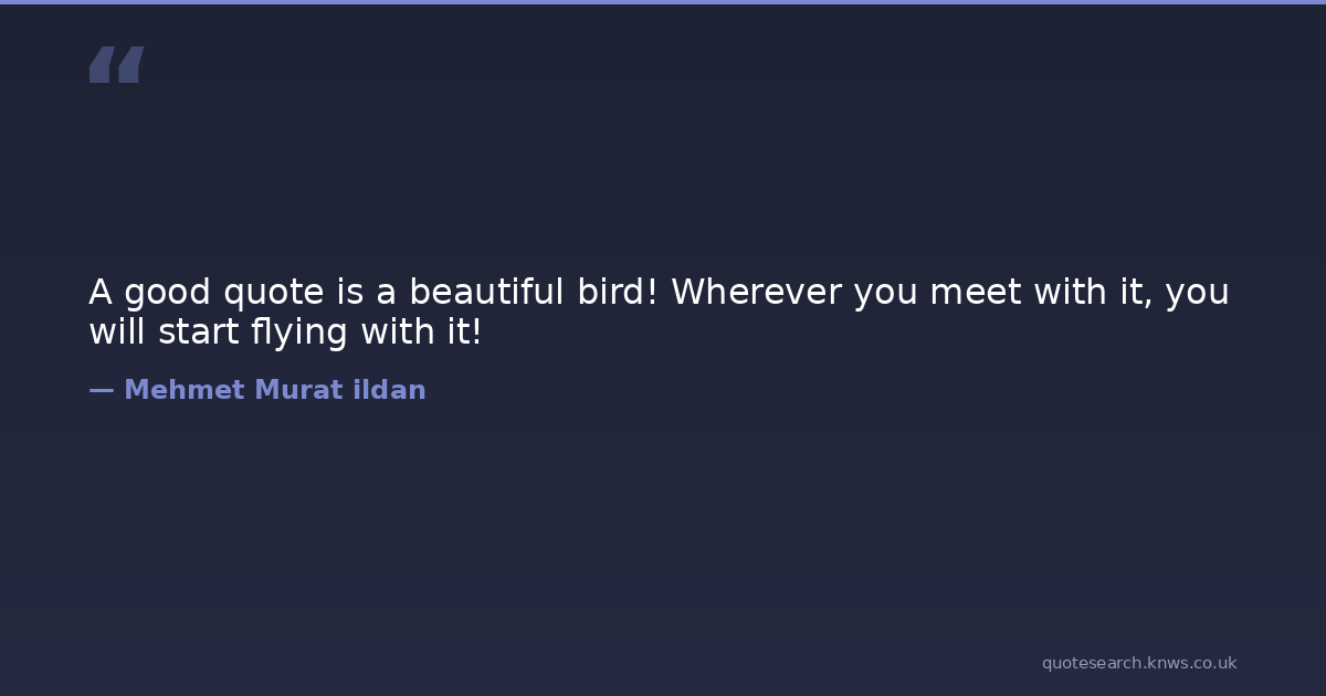 A good quote is a beautiful bird! Wherever you meet with it, you will start flying with it!