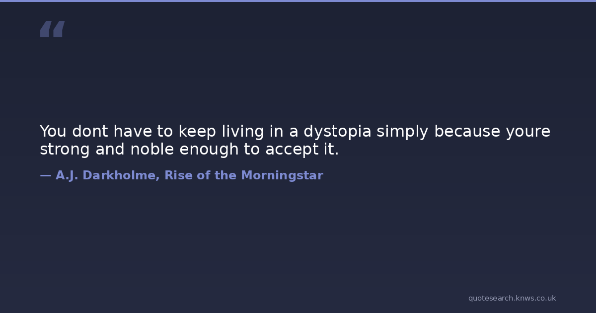You dont have to keep living in a dystopia simply because youre strong and noble enough to accept it.
