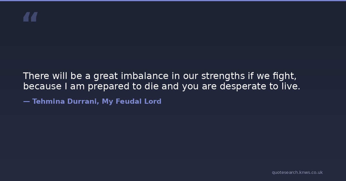 There will be a great imbalance in our strengths if we fight, because I am prepared to die and you are desperate to live.