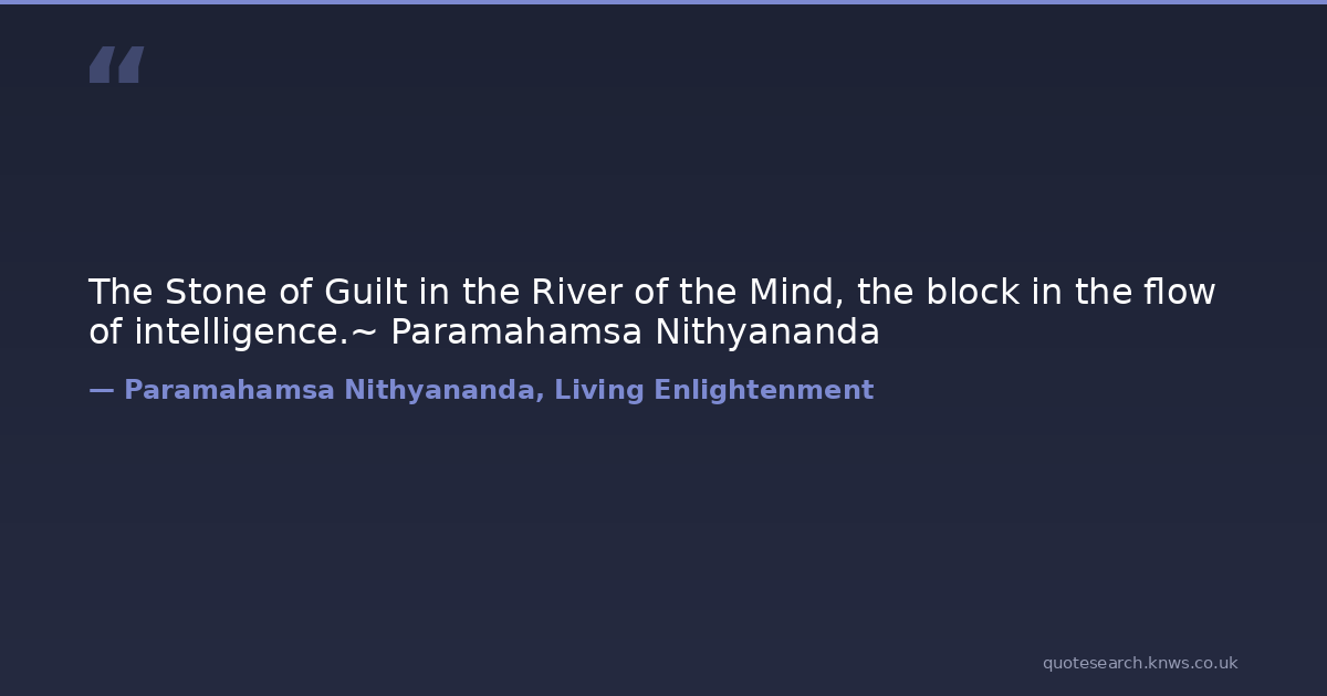 The Stone of Guilt in the River of the Mind, the block in the flow of intelligence.~ Paramahamsa Nithyananda