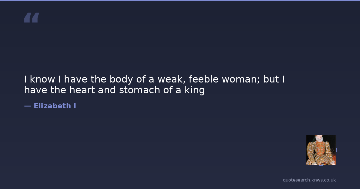 I know I have the body of a weak, feeble woman; but I have the heart and stomach of a king