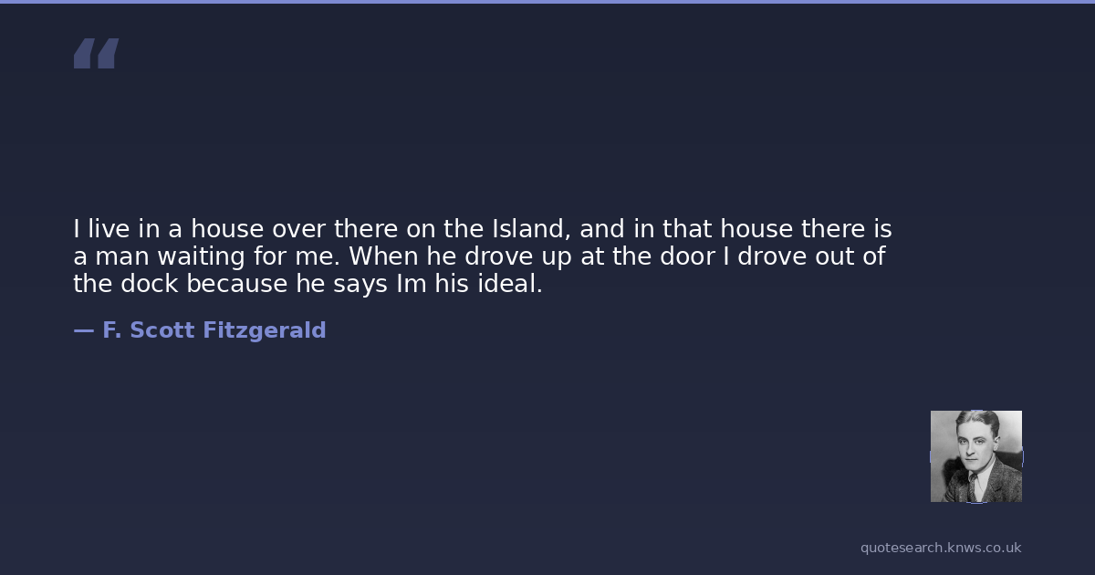 I live in a house over there on the Island, and in that house there is a man waiting for me. When he drove up at the door I drove out of the dock because he says Im his ideal.